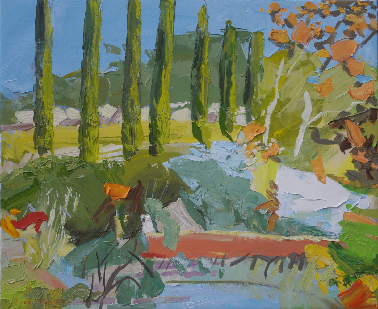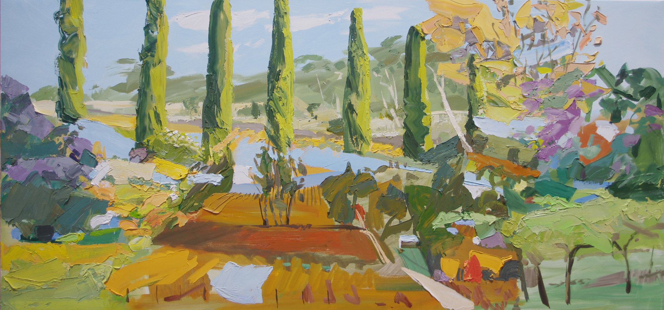 Autumn Vineyard with Cypresses, oil on canvas, 101×152 -
